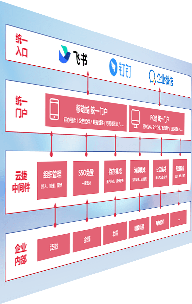 对协作平台提供支持服务,,,支持企业应用与协作平台对接,,包含组织同步、、、消息集成、、待办集成等。。。。支持目前主流的协作平台:钉钉、、、、企微和飞书。。